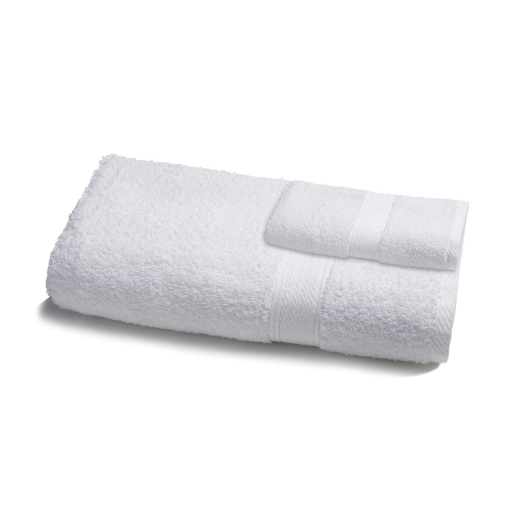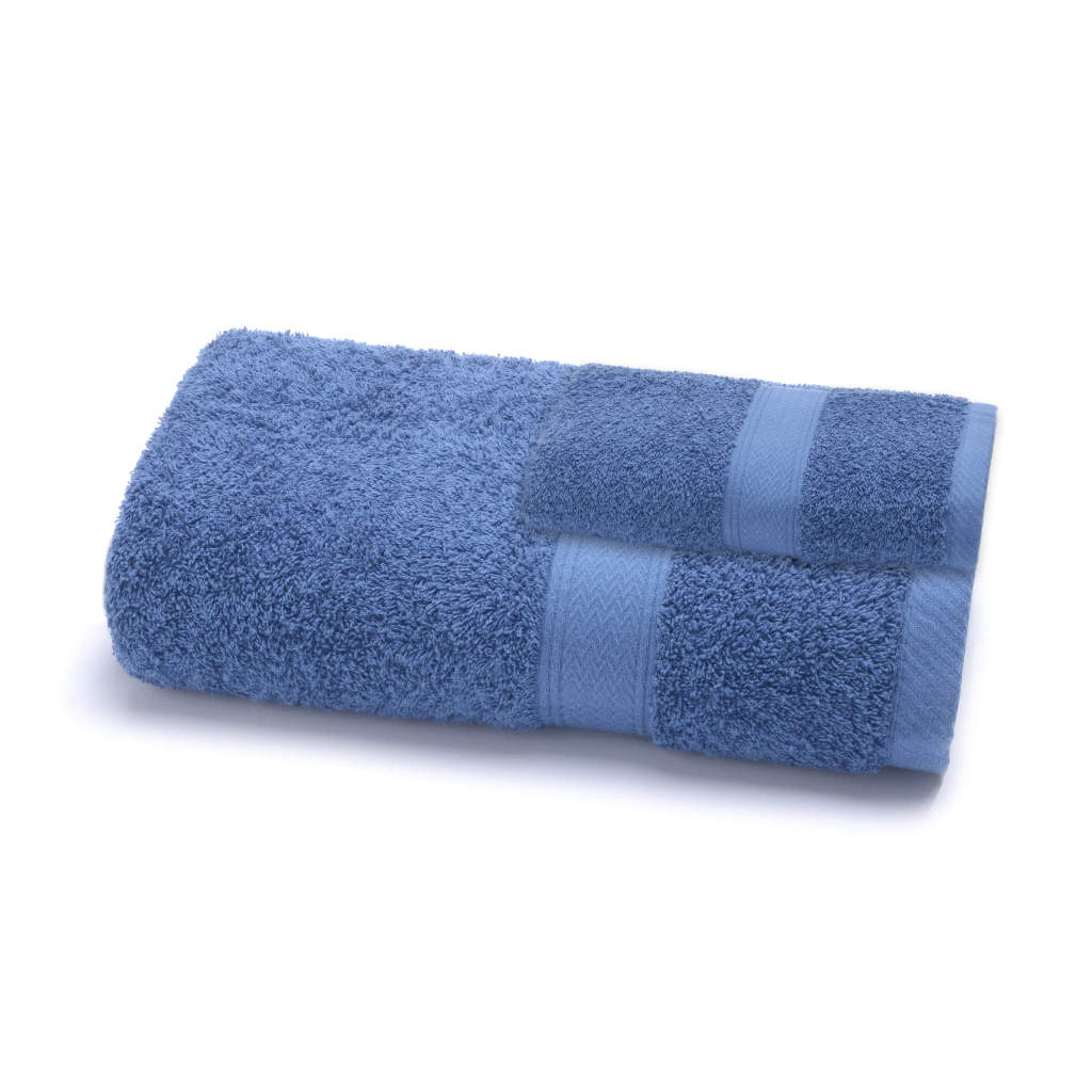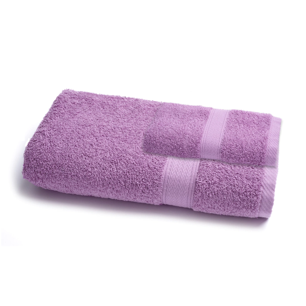 100% Algodon, de 500 grs/m2. 1 toalla (0,50x0,85 mts) y 1 toallón (0,80x1,50)